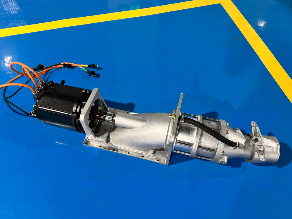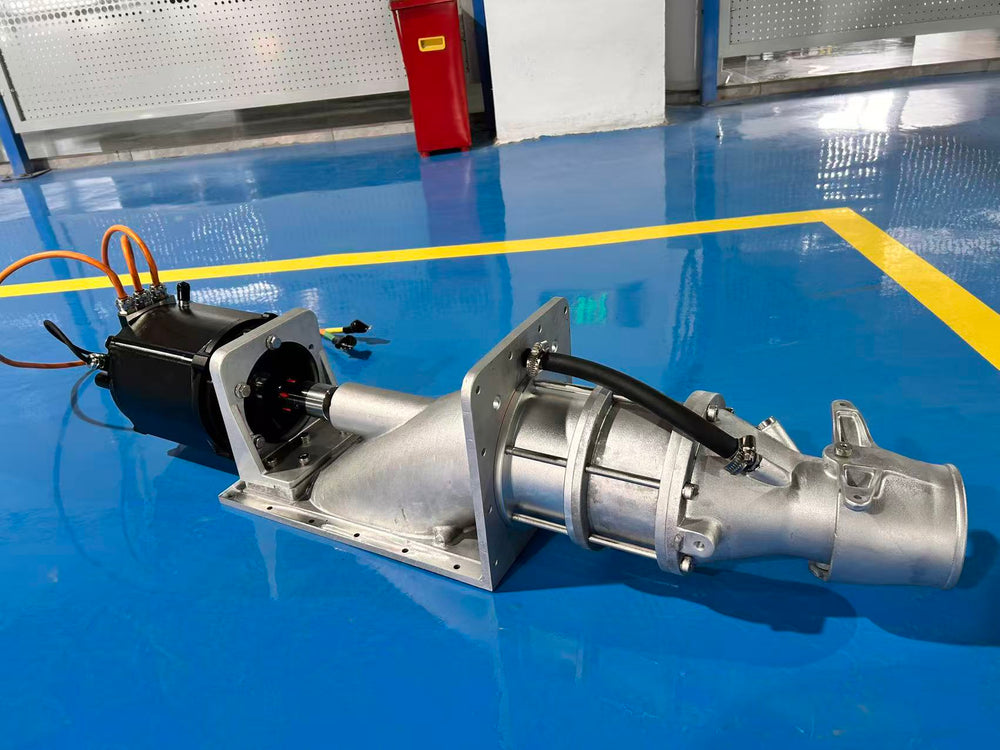 For customers who want more power margin and thermal stability, we also offer a complete 144V drive system developed for mini jet boats. The system is rated at 35kW, with peak power up to 75kW, and includes the motor, liquid-cooled controller, 160mm jet pump, dashboard, and full wiring harness.